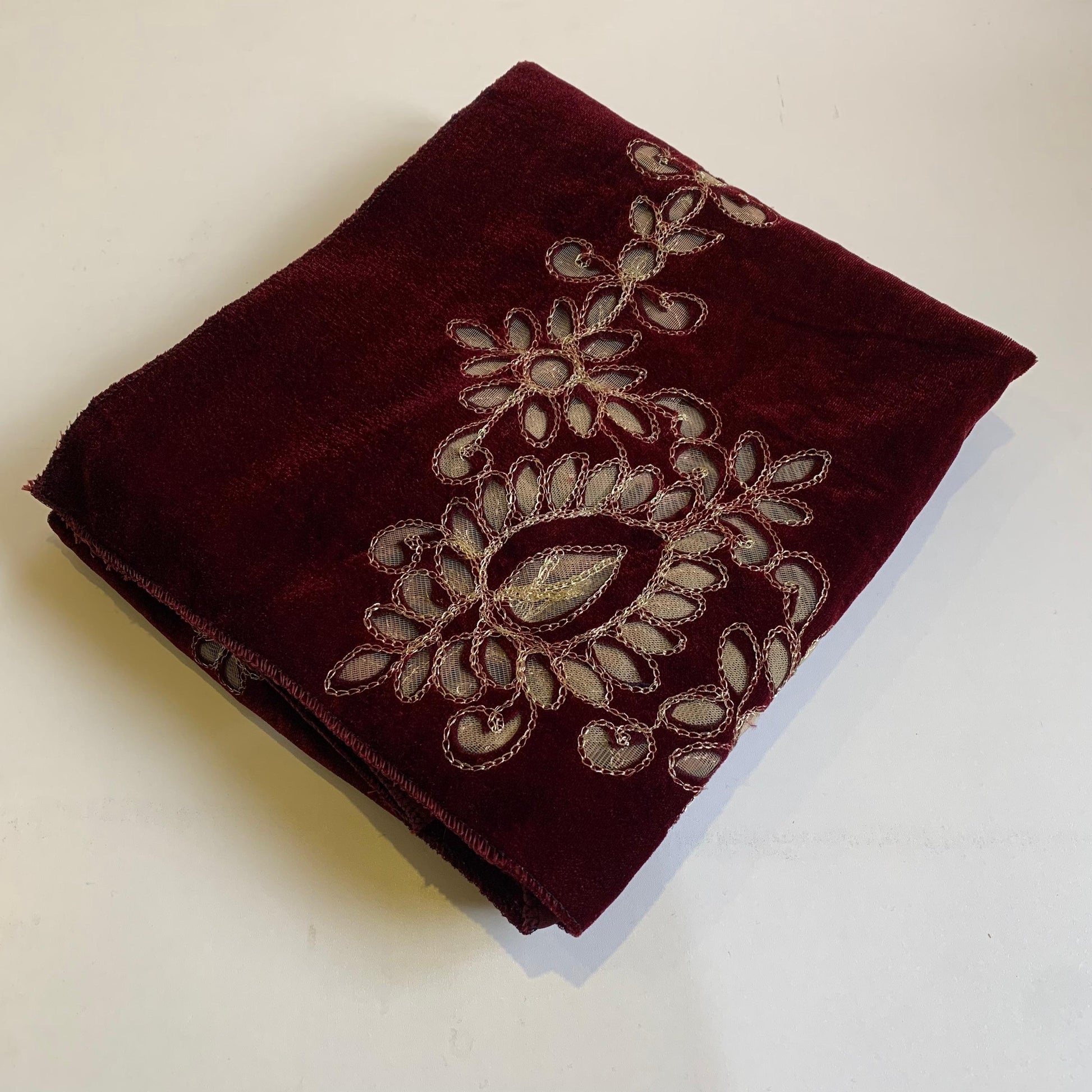 Indulge in the elegance of this stunning Velvet Shawl, a perfect accessory to elevate your ethnic or formal attire. Crafted from rich, plush burgundy velvet, this shawl offers both luxurious warmth and a sophisticated drape.